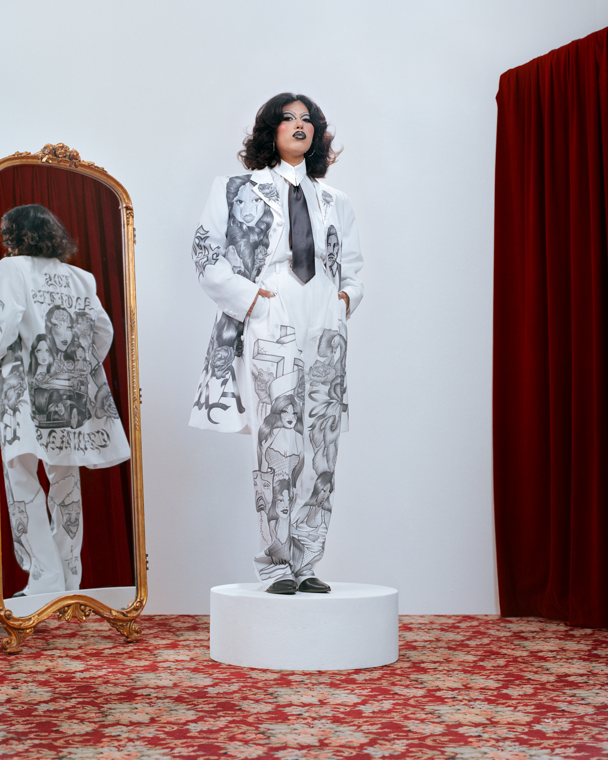 Photo: Carlos Jaramillo @_carlosjaramillo_ cc: Saul Barrera @saulebarrera, Fashion Stylist: Marcus Correa @marcusjcorrea cc: Deirdre Marcial @ddmarcial, Fashion Director: Keyla Marquez @Keylakeylakeyla, Art: Maria Maea @maeamaria Lance Rico @levulose_, Makeup: Selena Ruiz @anythingforselenaaassss cc: Leslie Castle @leslieecastle, Hair: Nelson Vercher @nelsonvercher cc: Rebecca Velez @beckinbeautyxo_, Producer: Myrna Perez @myrnassty cc: Leslie Ambriz @leslieambriz_, Spiritual Department: Pablo Simental @nene.pablo, Graphics: Paul Flores @plflrs, Studio: Dust Studios @duststudiosla