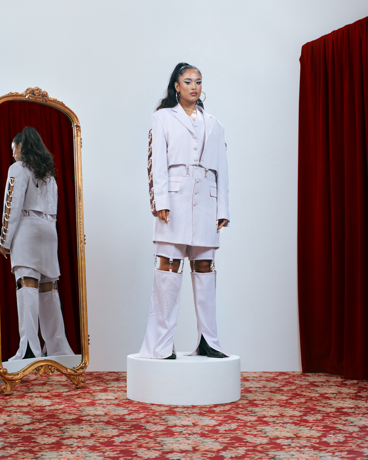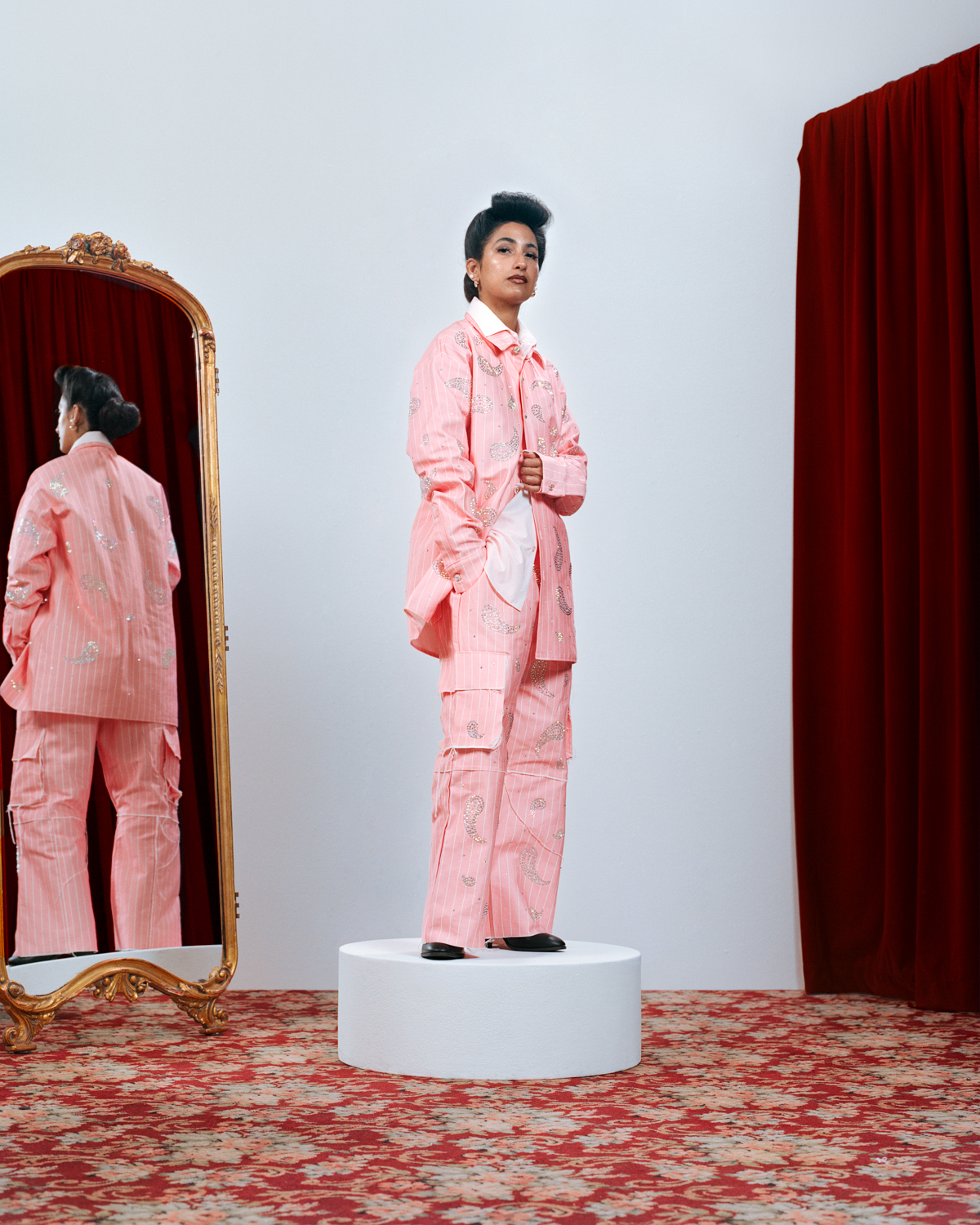 She tells LATINA, “I wanted to invite designers to reimagine the suit. I asked them, ‘What’s the evolution of it through your eyes? Through your aesthetic? Through your craft?’ because every designer has a different story they are trying to tell. I want to incorporate that story.”